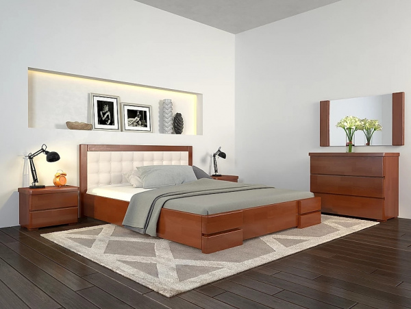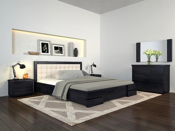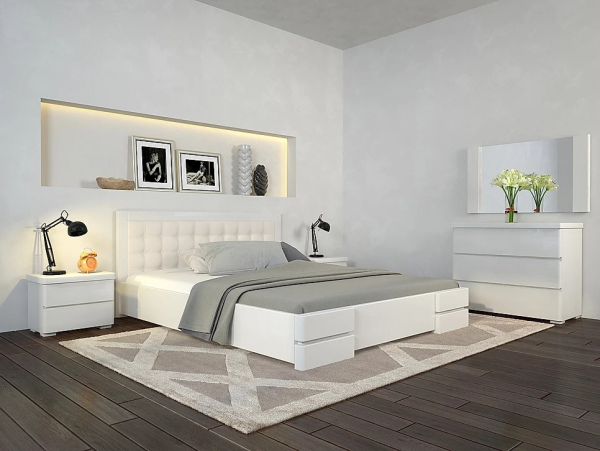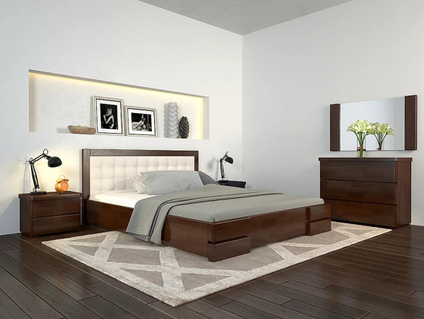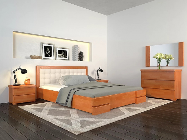 Дане ліжко може бути виконане з підйомним механізмом і коробами для речей.
